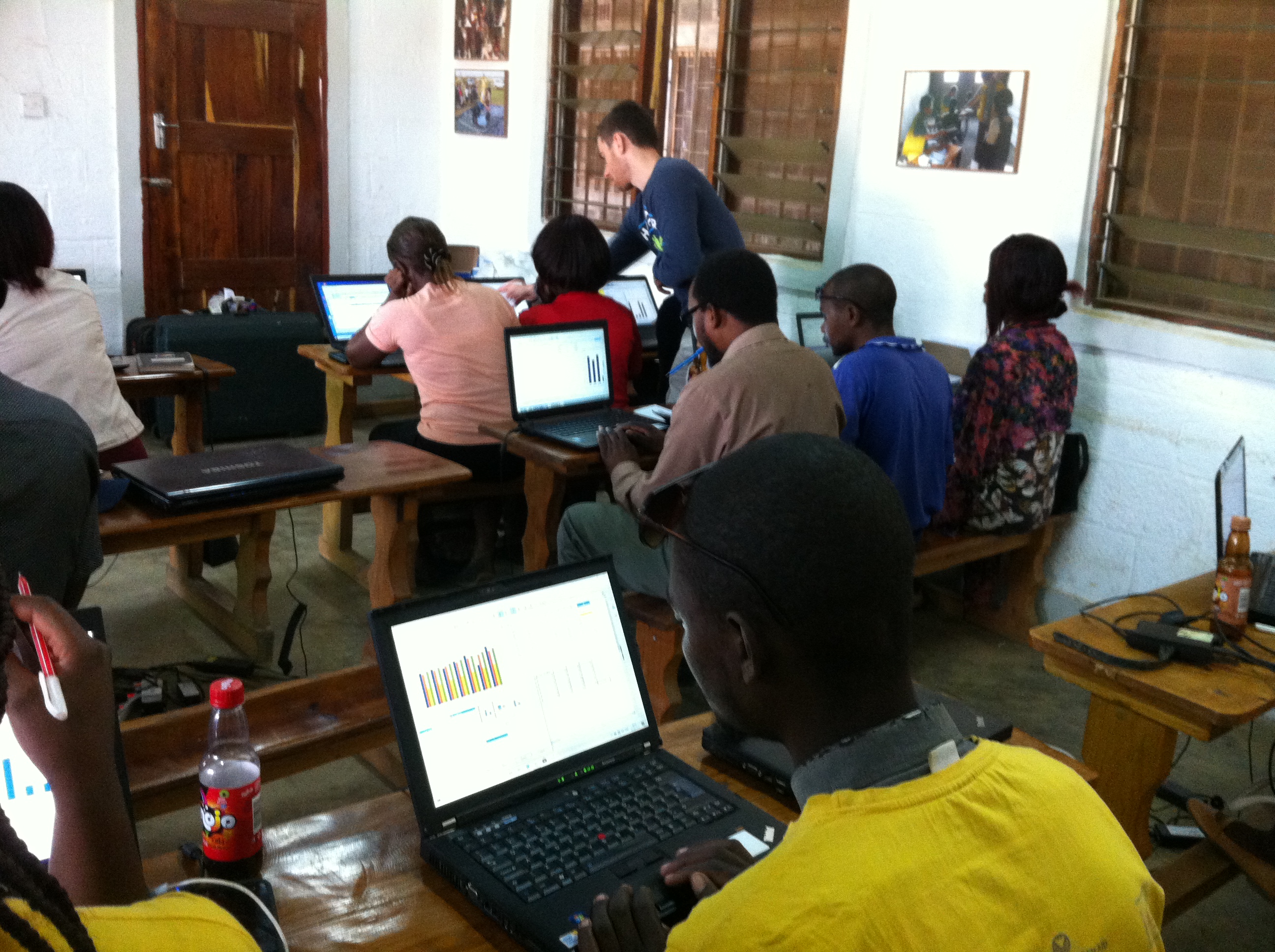 Additionally, this year we again had lessons in computers, and about 100 teachers were instructed in the basics of computer use over the course of two weeks. Most of these people had never had access to computers before but by the end of the course, all were competent in using a computer and in the basics of MS Word, Excel, Powerpoint and the use of emails. This was made possible by the time and devotion of the volunteers who travelled with us, and by the kind donation of 24 laptop computers from different people over the years. What was hugely rewarding, was that we also had local Zambian volunteers who had been taught in computers in previous years who also assisted with the teaching, thereby spreading their skills wider and establishing them as local experts, who can support other learners. Reports since we came back, indicate that several participants in this group were able to find work subsequently, using their computer skills.